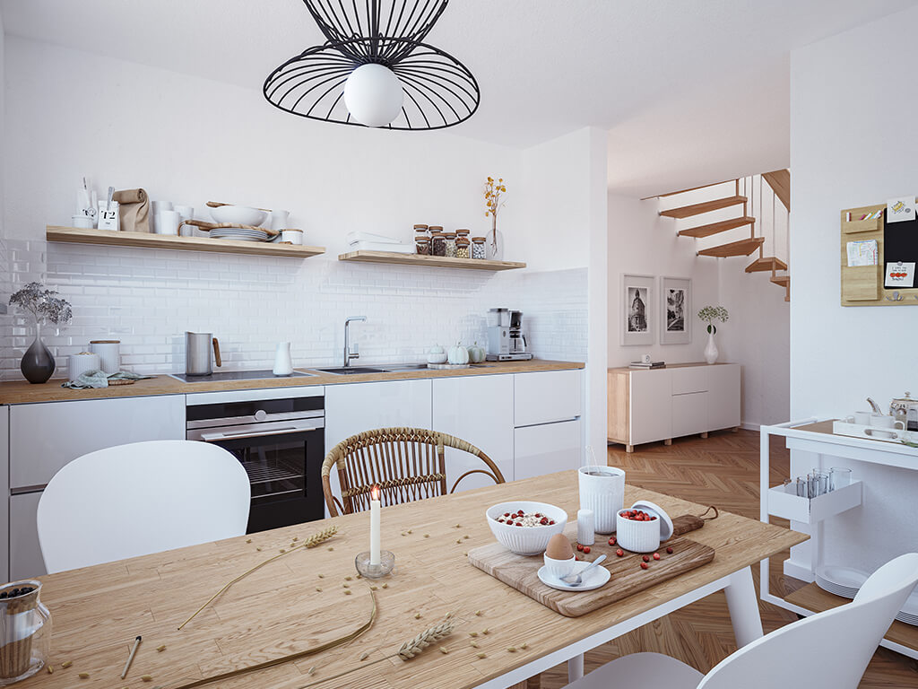 Ihre Doppelhaushälfte ist ebenso klassisch geplant. Treten Sie ein, hängen Sie Ihre Jacke gleich in der praktischen Garderobe im Flur auf. Das geräumige Wohnzimmer mit seinen großen Fenstern ist genau der richtige Ort für sonnige Gemüter, ein toller Treffpunkt für die ganze Familie mit schönem Blick in Ihren Garten. In der Küche haben Sie nicht nur viel Bewegungsfreiheit, sondern auch ausreichend Platz für eine gemütliche Sitzecke – perfekt für einen Familienkochabend oder ein gemeinsames Frühstück am Morgen.