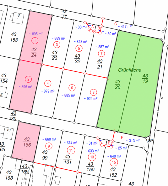 Fläche der Bauplätze: 660 - 924 m²