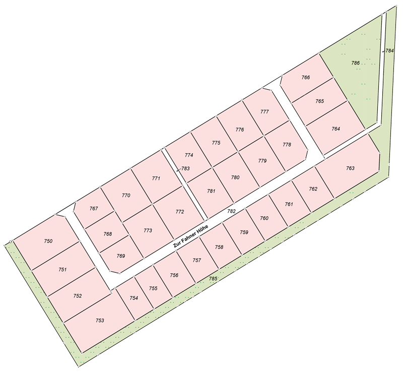Fläche der Bauplätze: 479 m² - 1.148 m²