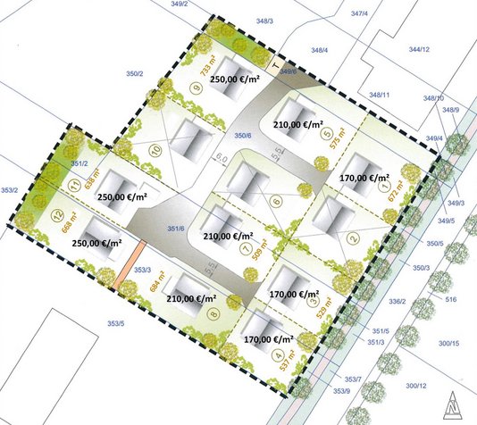| Grundstück | Fläche in m² | €/m² | Kaufpreis | verkauft/reserviert |