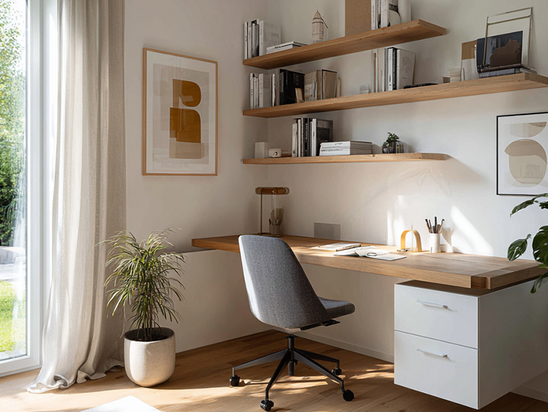 Ein Raum, der Ruhe schenkt und Raum für Kreativität lässt – perfekt für konzentriertes Arbeiten im Home Office.
