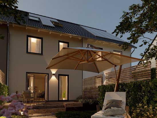 Auch wenn es um Energie geht, können Sie sich sicher sein. Mit der Photovoltaik-Vorrüstung bleiben Sie flexibel und machen sich unabhängig von steigenden Energiepreisen. Dann, wenn Sie es wollen. Ausreichend Platz für einen Energiespeicher bietet Ihr Hausanschlussraum. - Wärmepumpe: Heute bereits an Morgen denken - in jedem Haus ist eine Wärmepumpe inklusive. Sie erfüllen die aktuellen Energiestandards, sparen bares Geld und reduzieren Ihren CO2-Fußabdruck.