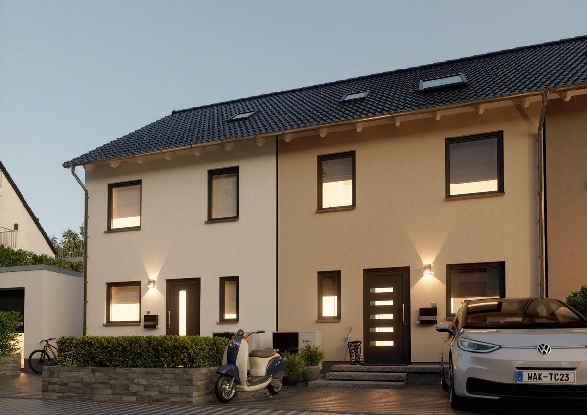 - Vorrüstung E-Auto: Wir denken nicht nur mit, sondern setzen auch direkt um. Alle unsere Häuser haben eine E-Auto Vorrüstung. Damit sind sie mobil, flexibel und bleiben beweglich.