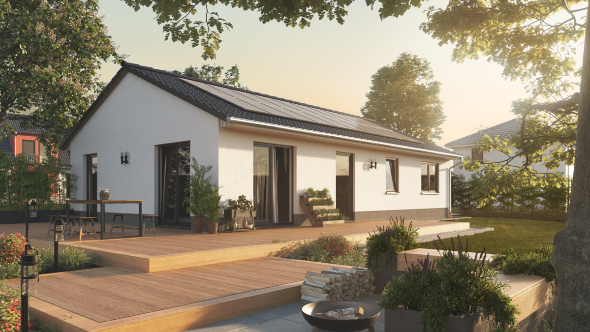 Leben auf einer Ebene - Auf einer Ebene mit der Natur, ein Leben ohne Stufen – der Bungalow 100 ist genau das richtige Haus für alle, die auf das Treppen steigen verzichten möchten. In diesem Haus können Sie sich auf 100 Quadratmetern ohne lange Wege wohlfühlen.