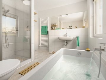 • Sanitärausstattung: Ihre Badezimmer sind voll ausgestattet. Dazu gehört auch eine bodengleiche Dusche.