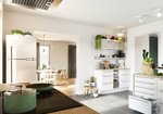 In der Küche haben Sie genug Platz für gemeinsame Kochabende mit den Liebsten oder ein schnelles Frühstück unter der Woche. Wer hin und wieder lieber im Home-Office arbeitet, kann sich neben dem Wohnzimmer ein Arbeitszimmer einrichten.