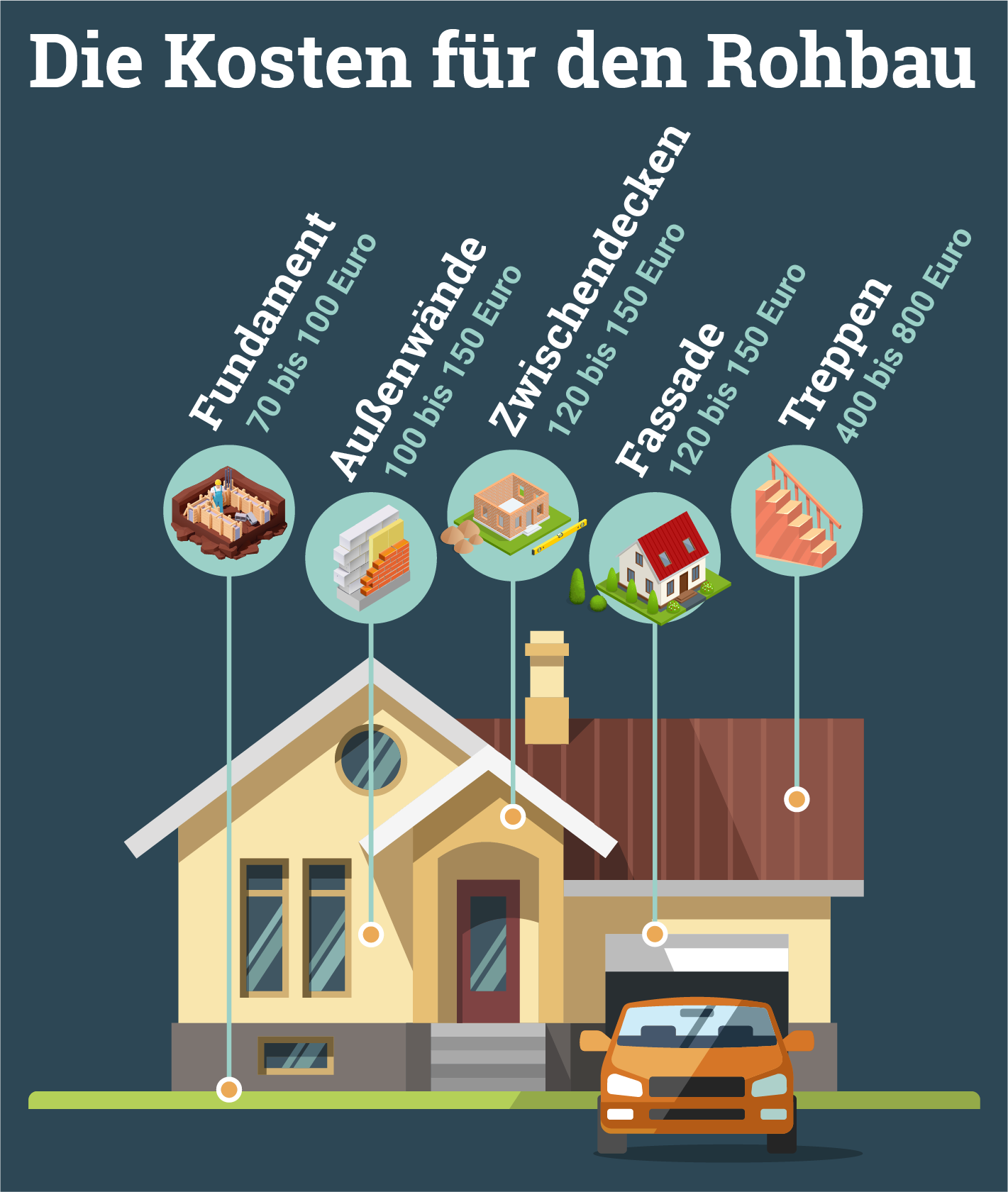 - Die Hauptkostenfaktoren von Immobilien sind neben dem Grundstück die eigentlichen Hausbaukosten und die Baunebenkosten (ca. 15 Prozent des Gesamtpreises).