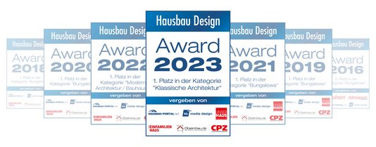 Town & Country Haus bedankt sich für Ihre Stimme beim Hausbau-Design-Award 2023. Zum 7-mal wurde Deutschlands meistgebautes Markenhaus mit dem Hausbau-Design-Award ausgezeichnet und belegte in diesem Jahr mit dem Flair 125 mit Anbau den 1. Platz in der Kategorie “klassische Architektur”.