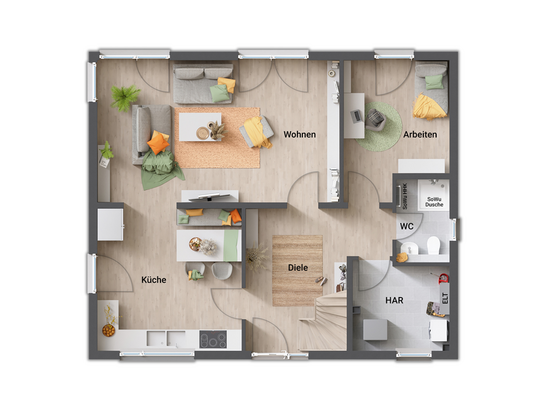 • Fußbodenheizung: Warme Füße? Auch die Fußbodenheizung ist inklusive. Sie steigert nicht nur den Wert Ihres Hauses, sondern sorgt ganz nebenbei noch für echtes Wohngefühl.