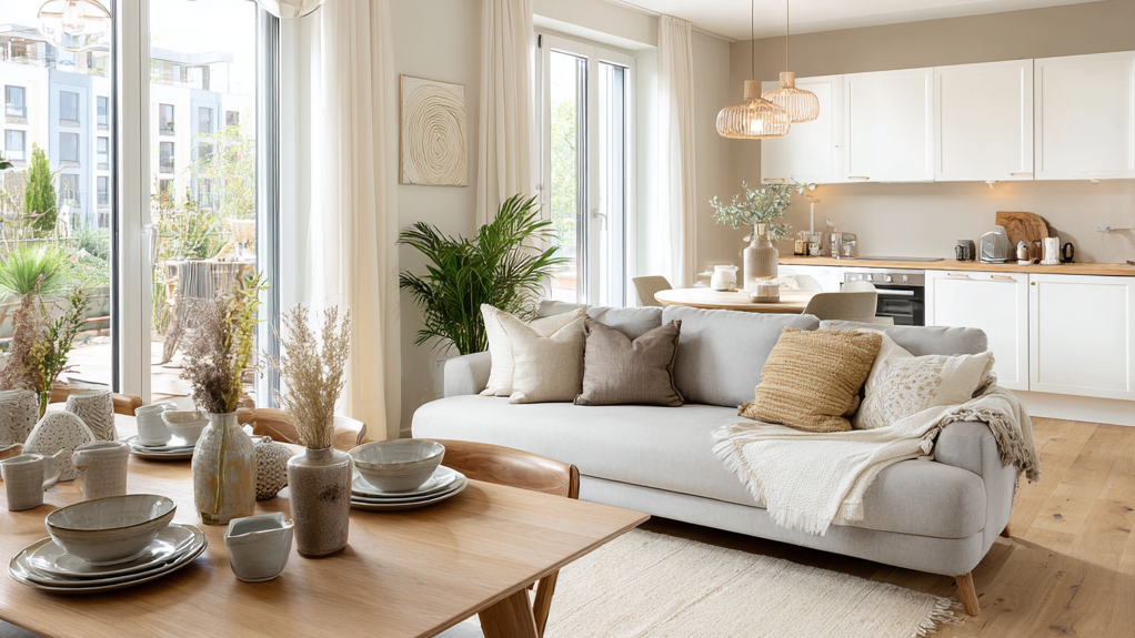 Auch ohne Wände benötigt ein Raum bestimmte Zonen. Eine erkennbare Aufteilung in Koch-, Ess- und Wohnbereich sorgt für Orientierung und Ruhe. Teppiche, unterschiedliche Bodenbeläge oder gezielt platzierte Möbel helfen dabei, einzelne Bereiche optisch abzugrenzen. Ein großes Sofa kann beispielsweise als Raumteiler zwischen Wohn- und Essbereich dienen, eine Kücheninsel schafft wiederum eine klare Grenze zwischen Kochen und Wohnen. So entstehen definierte Zonen, ohne den charakteristischen Charme des offenen Wohnkonzepts zu verlieren.